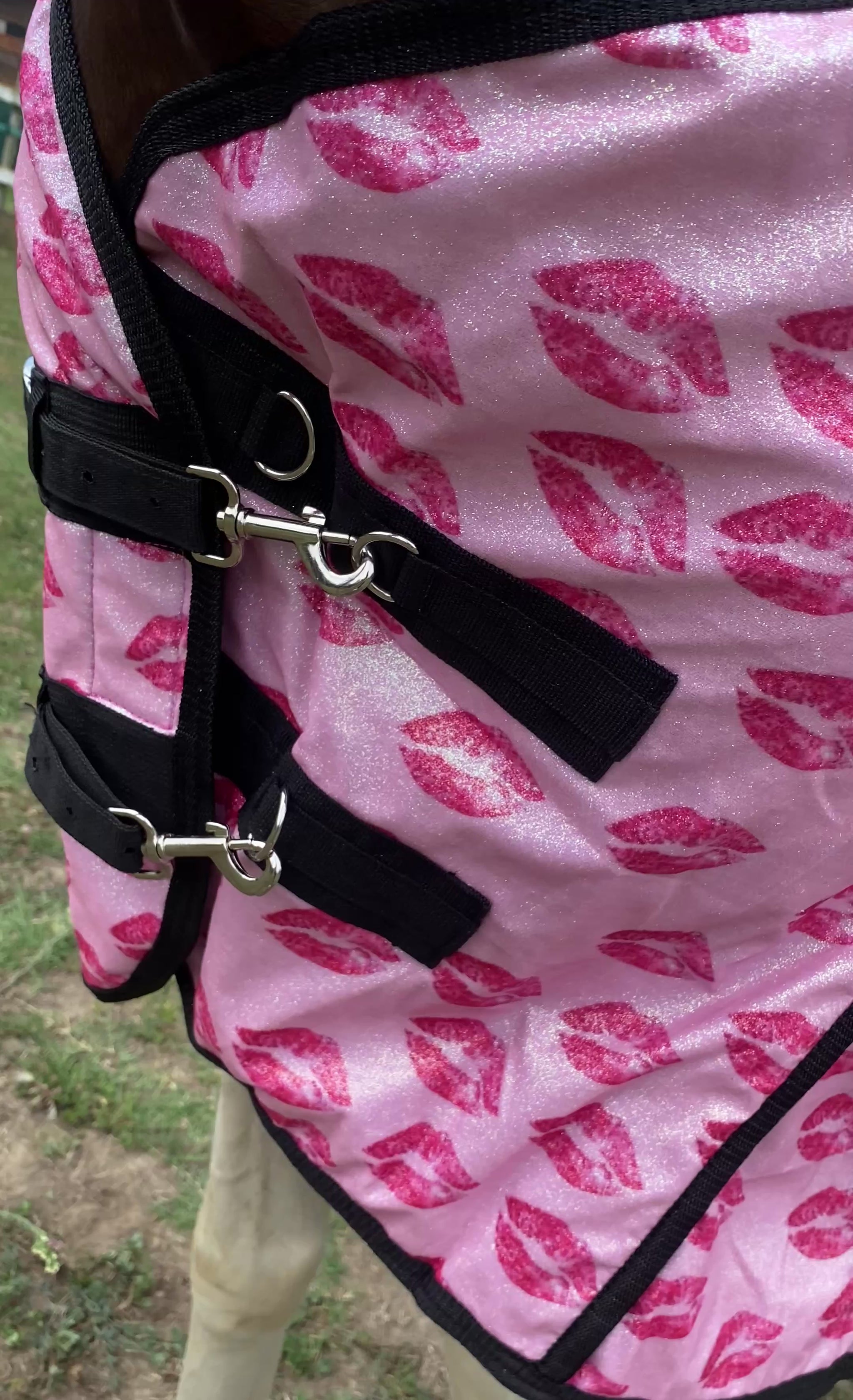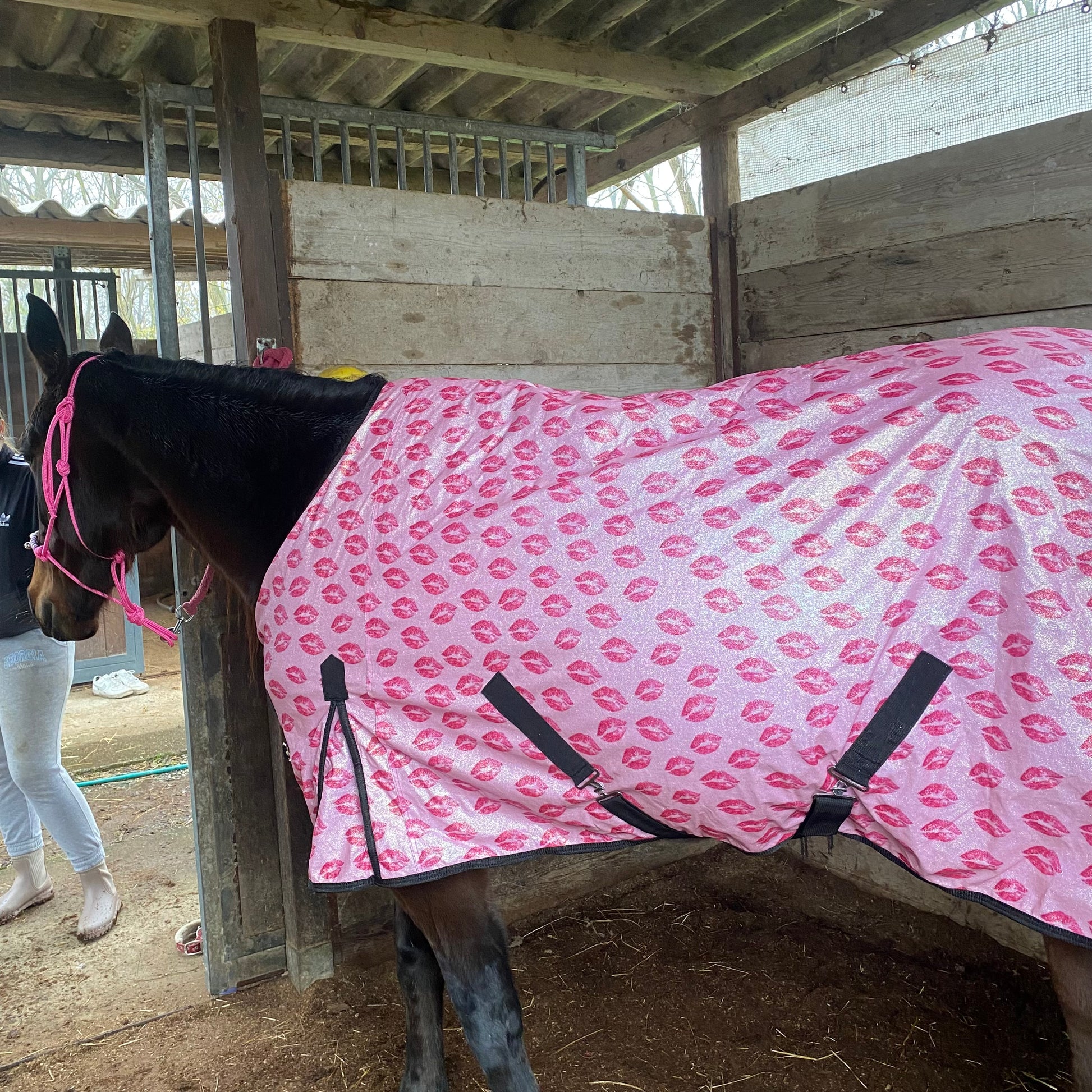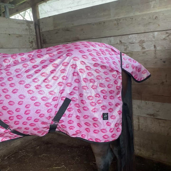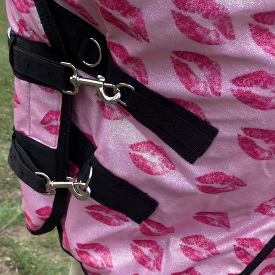 ✨ Coperta rosa chiaro con stampa di baci e un tocco glitterato, progettata per aggiungere un tocco di magia al look del tuo cavallo. Il design unico e l’effetto scintillante del glitter renderanno ogni momento speciale, perfetta per giornate di relax e per creare ricordi indimenticabili.