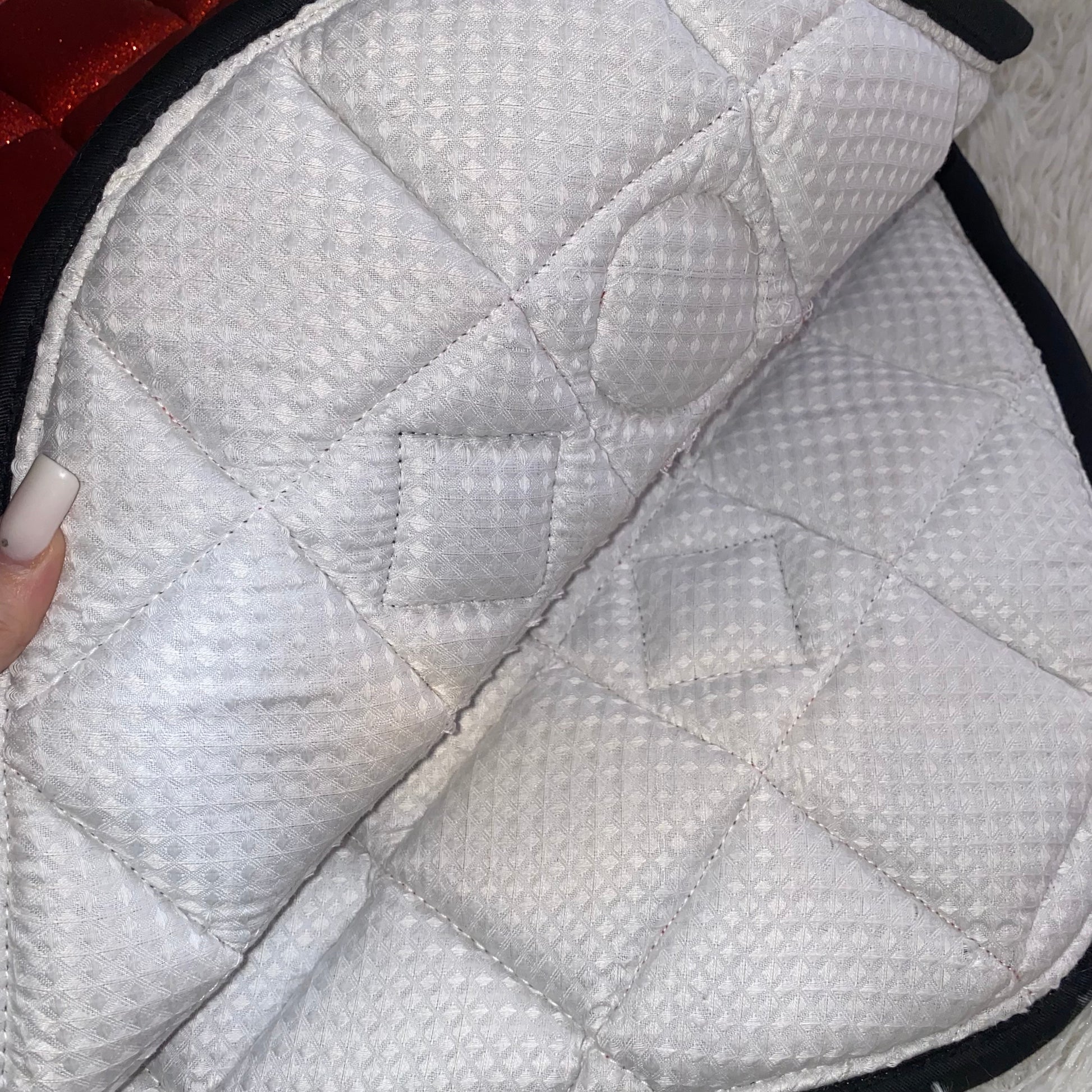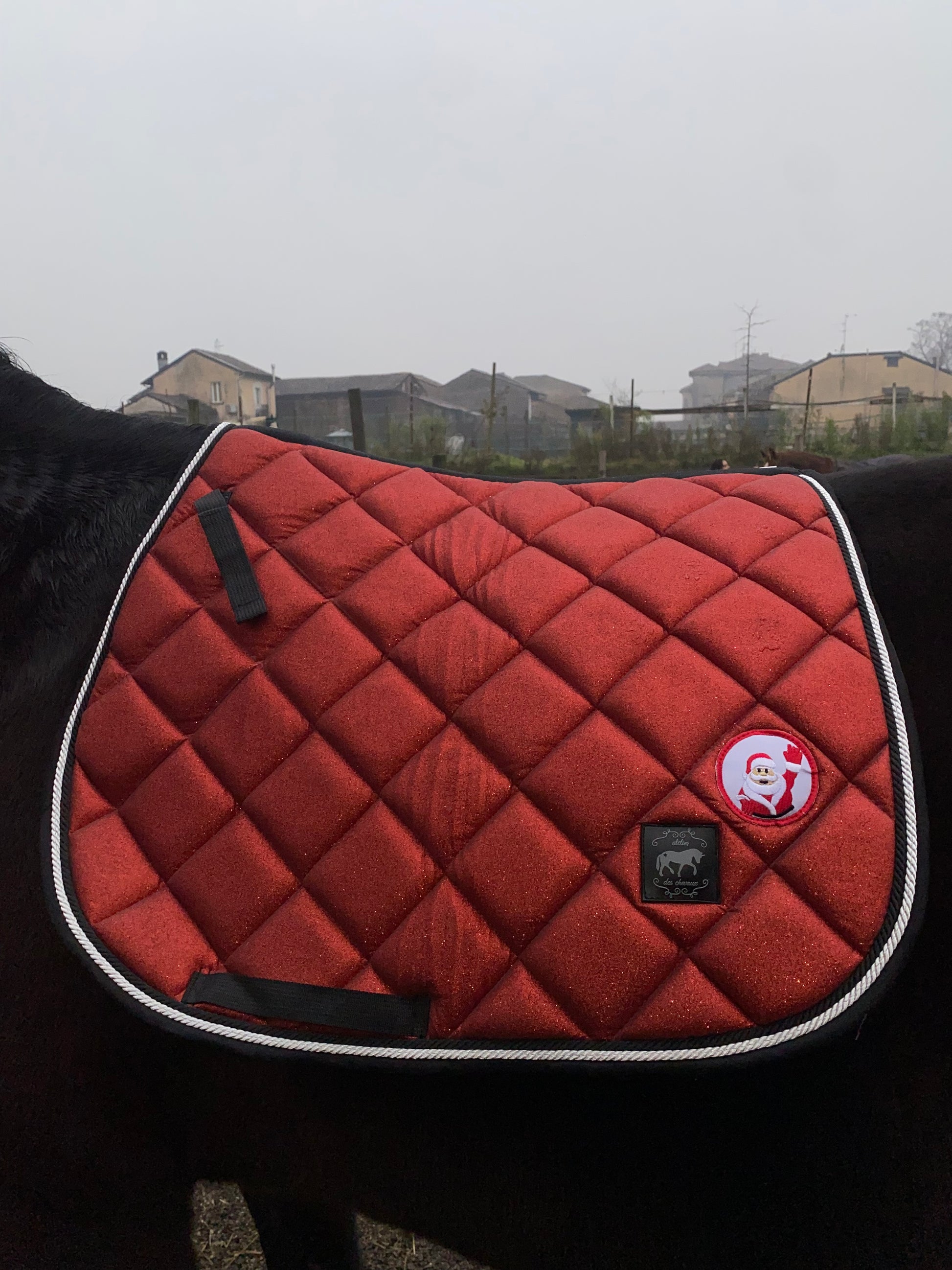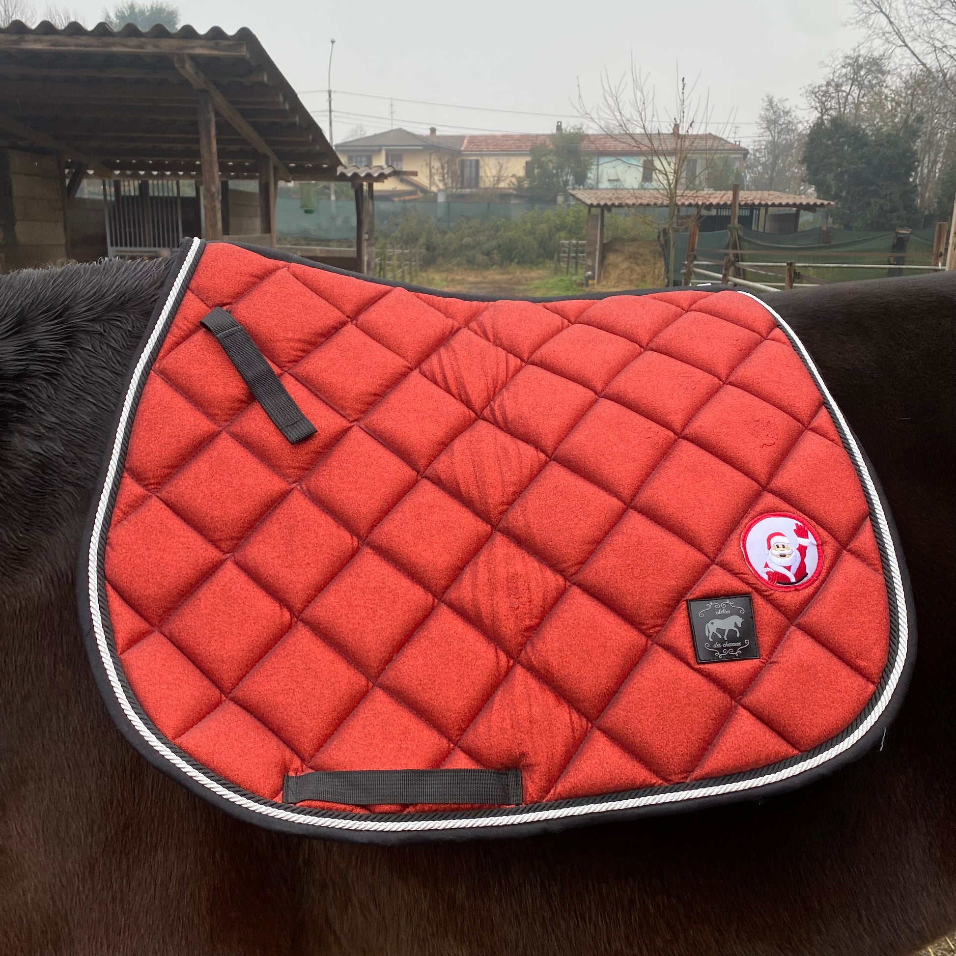 Sottosella da salto non sagomato, con interno a nido d’ape che assicura traspirabilità e comfort durante il lavoro. Decorazione di Babbo Natale posizionata accanto al logo per un tocco festivo. ❤️