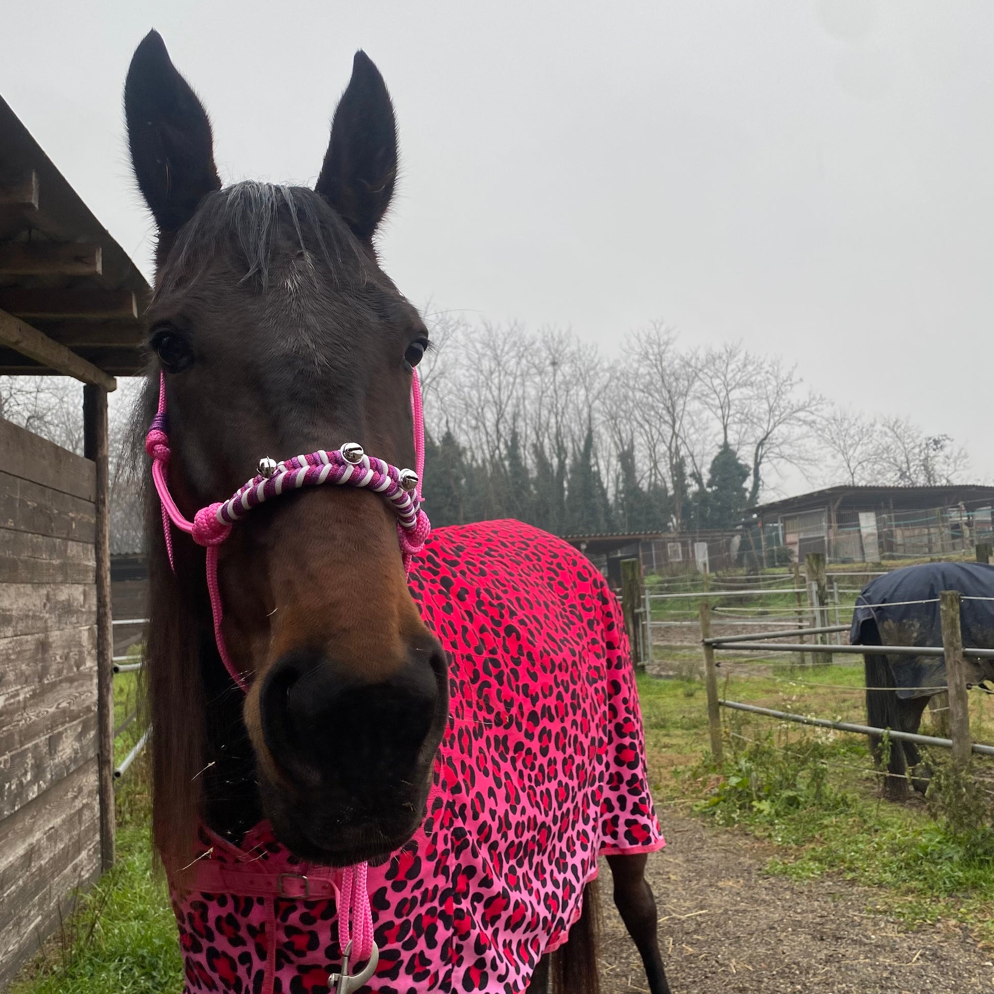 Soft and comfortable fleece blanket, ideal for keeping your horse warm during grooming, stables, walks, or transport. The design features a beautiful leopard print, adding a touch of glamour.