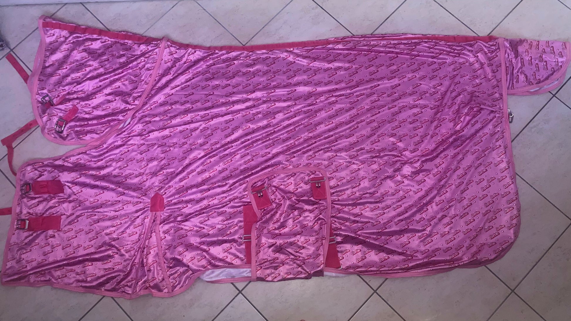 Coperta Barbie con collo, realizzata in un tessuto molto leggero, perfetta per l’autunno. Il colore rosa con la scritta Barbie aggiunge un tocco di stile unico.✨