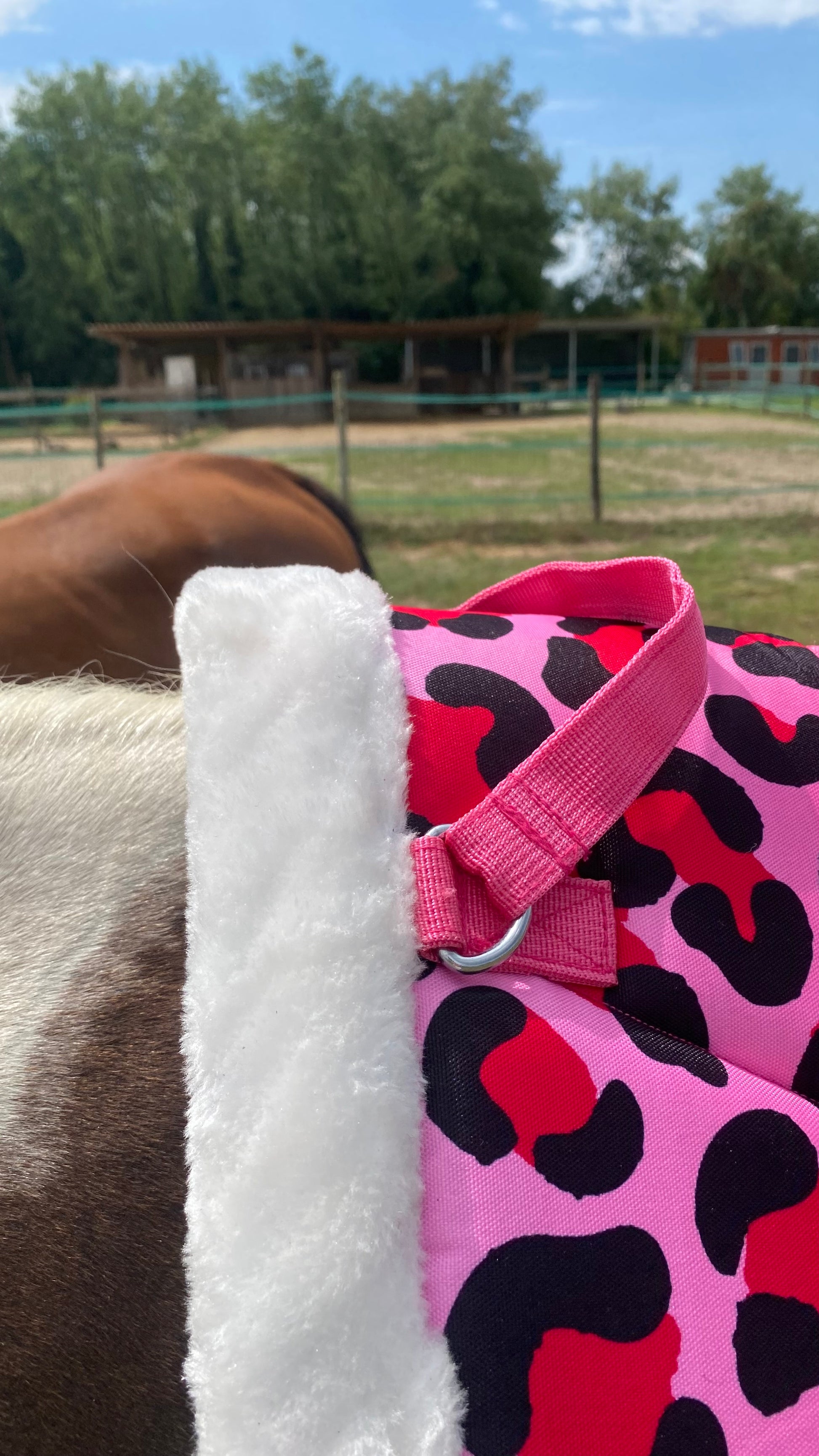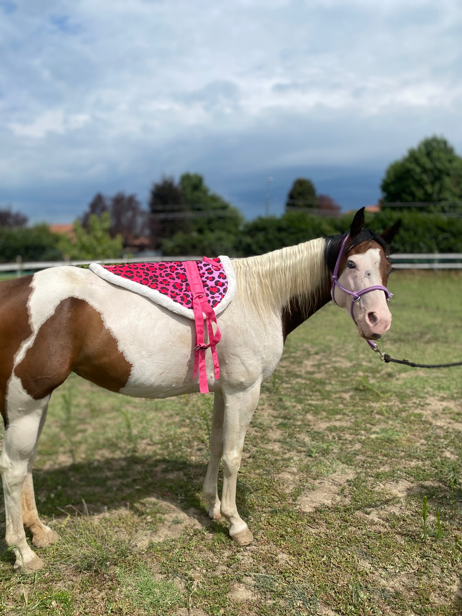 🌟 Bareback per cavallo perfetto per montare senza sella, progettato per garantire il massimo comfort e stabilità. Include sottopancia regolabile e staffe. Il design glamour leopardato fuchsia aggiunge un tocco di audacia e stile, rendendo questo accessorio non solo pratico, ma anche incredibilmente trendy.