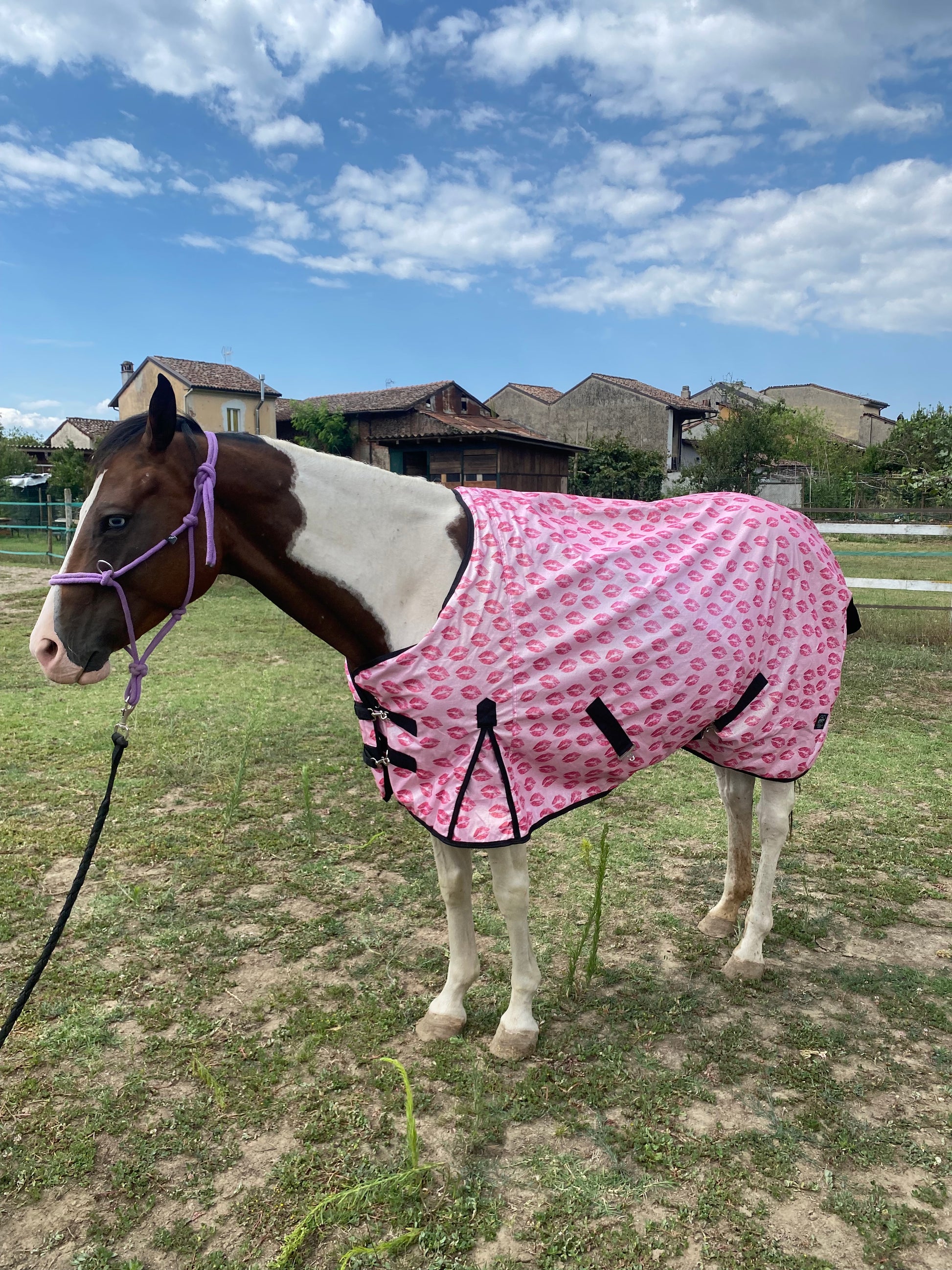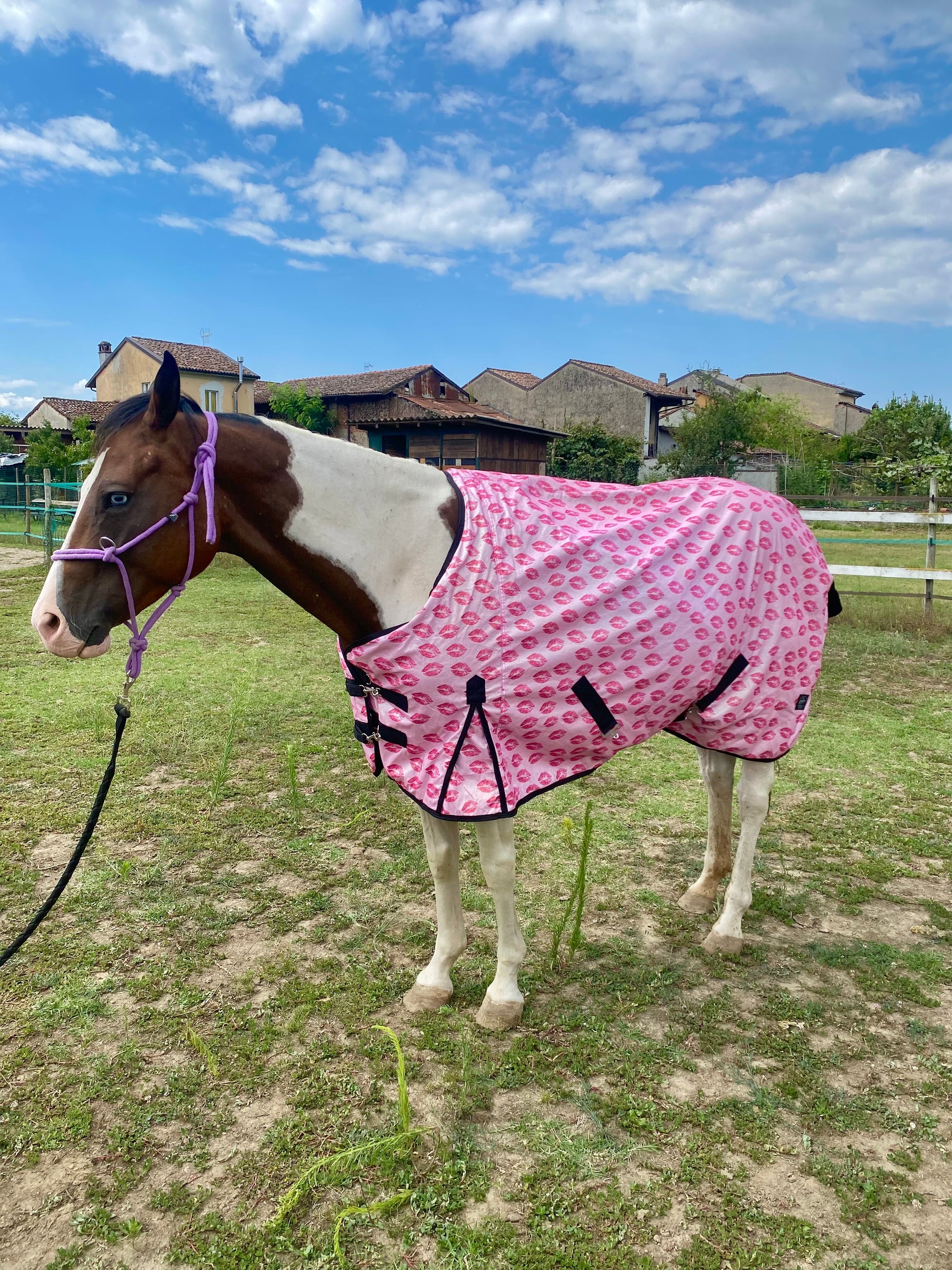 ✨ Coperta rosa chiaro con stampa di baci e un tocco glitterato, progettata per aggiungere un tocco di magia al look del tuo cavallo. Il design unico e l’effetto scintillante del glitter renderanno ogni momento speciale, perfetta per giornate di relax e per creare ricordi indimenticabili.