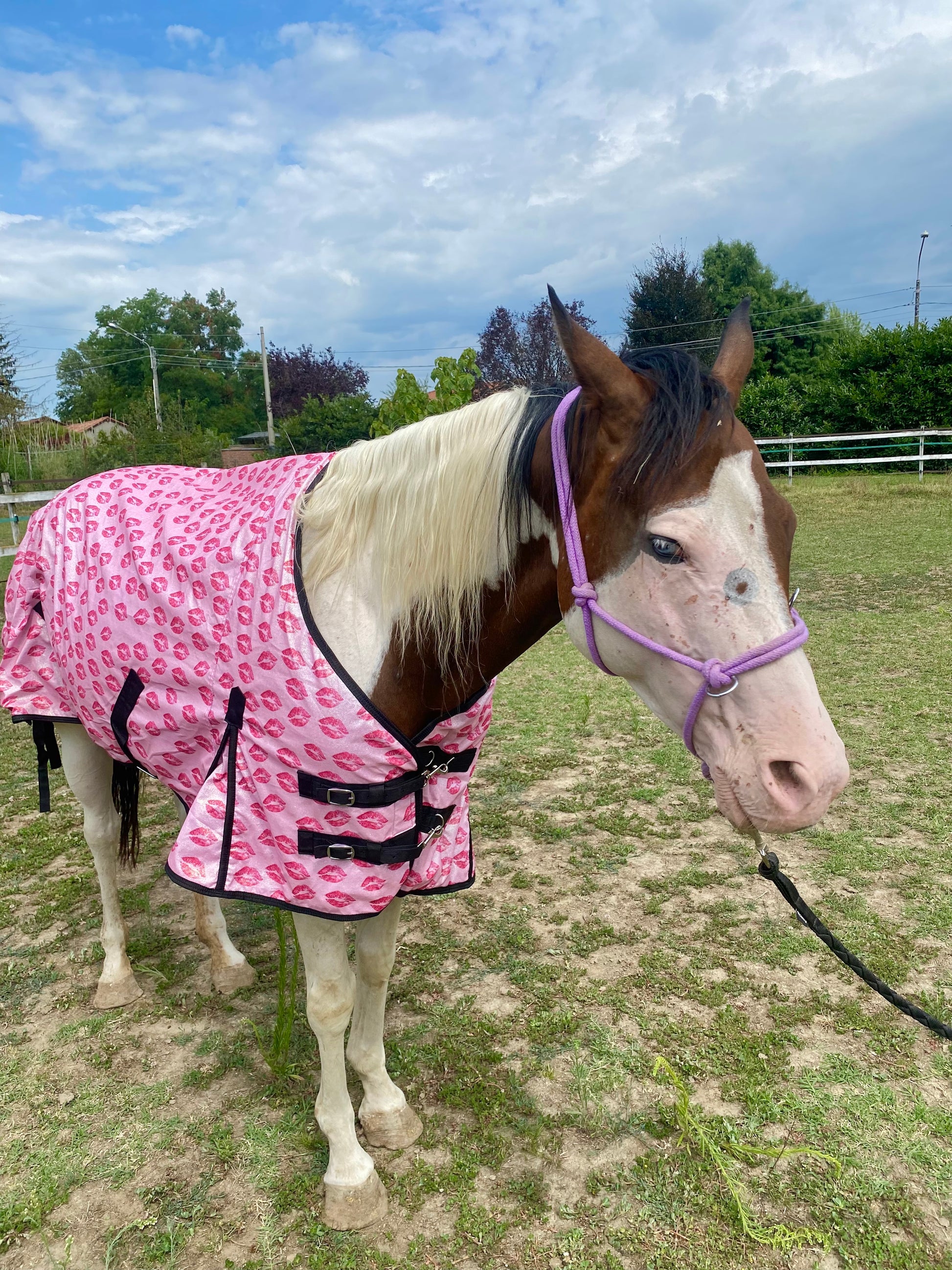 Perfetta per passeggiate tranquille e scatti fotografici, si consiglia di non utilizzarla in paddock in quanto non è impermeabile. Un accessorio glamour che non può mancare nel tuo guardaroba equino!