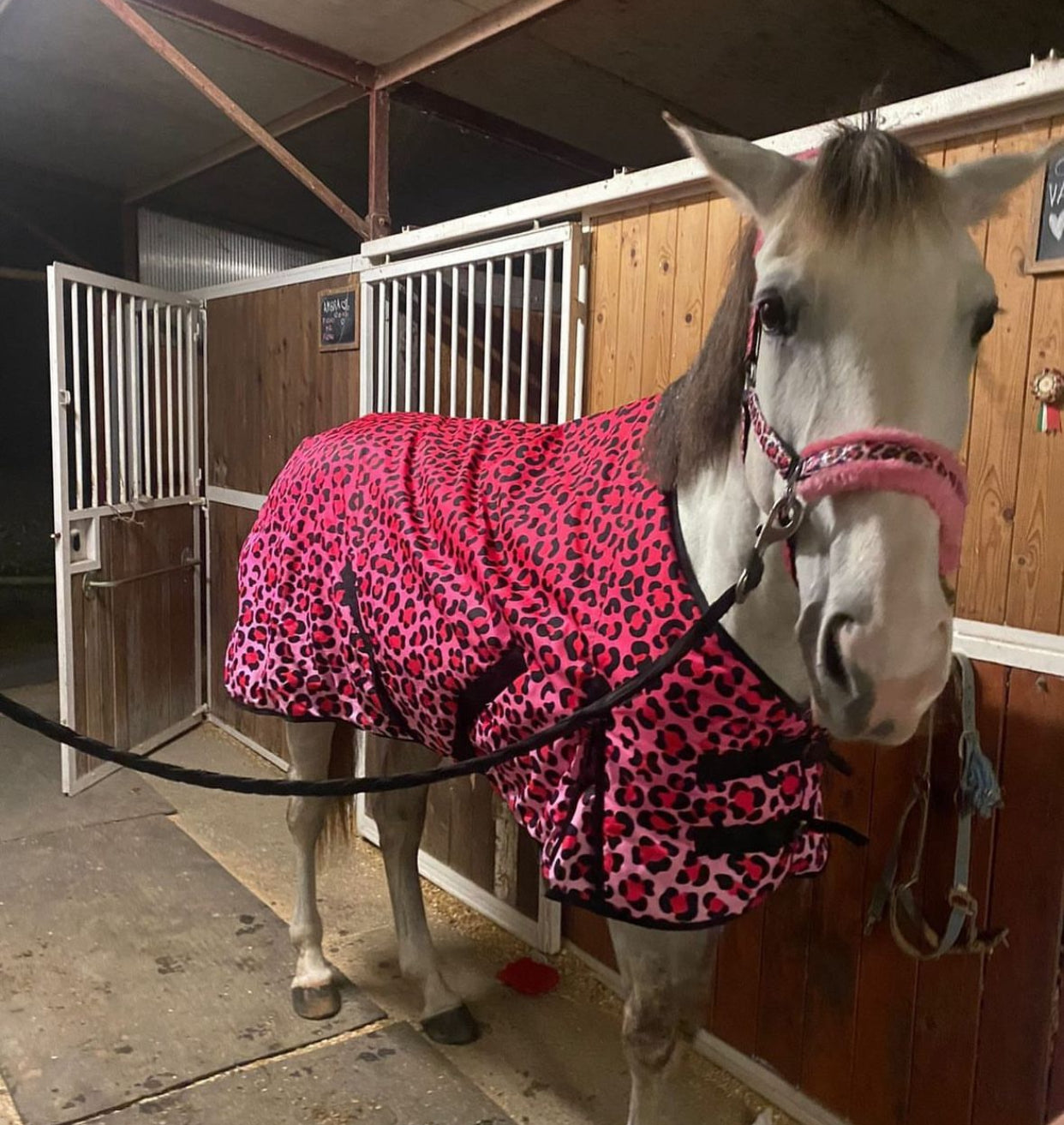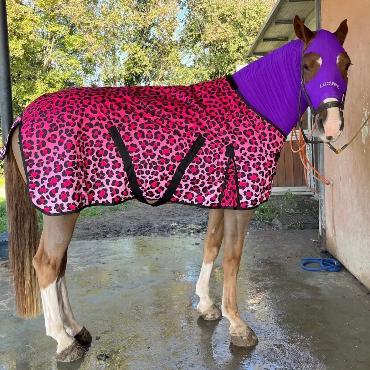 Se vuoi un mix perfetto di stile, protezione e unicità, la coperta “Glamour Leopard” è l’accessorio ideale per il tuo cavallo! Con la sua fantasia leopardata rosa, unisce comfort e resistenza con un tocco di lusso scintillante. Non a caso, è una delle più richieste!