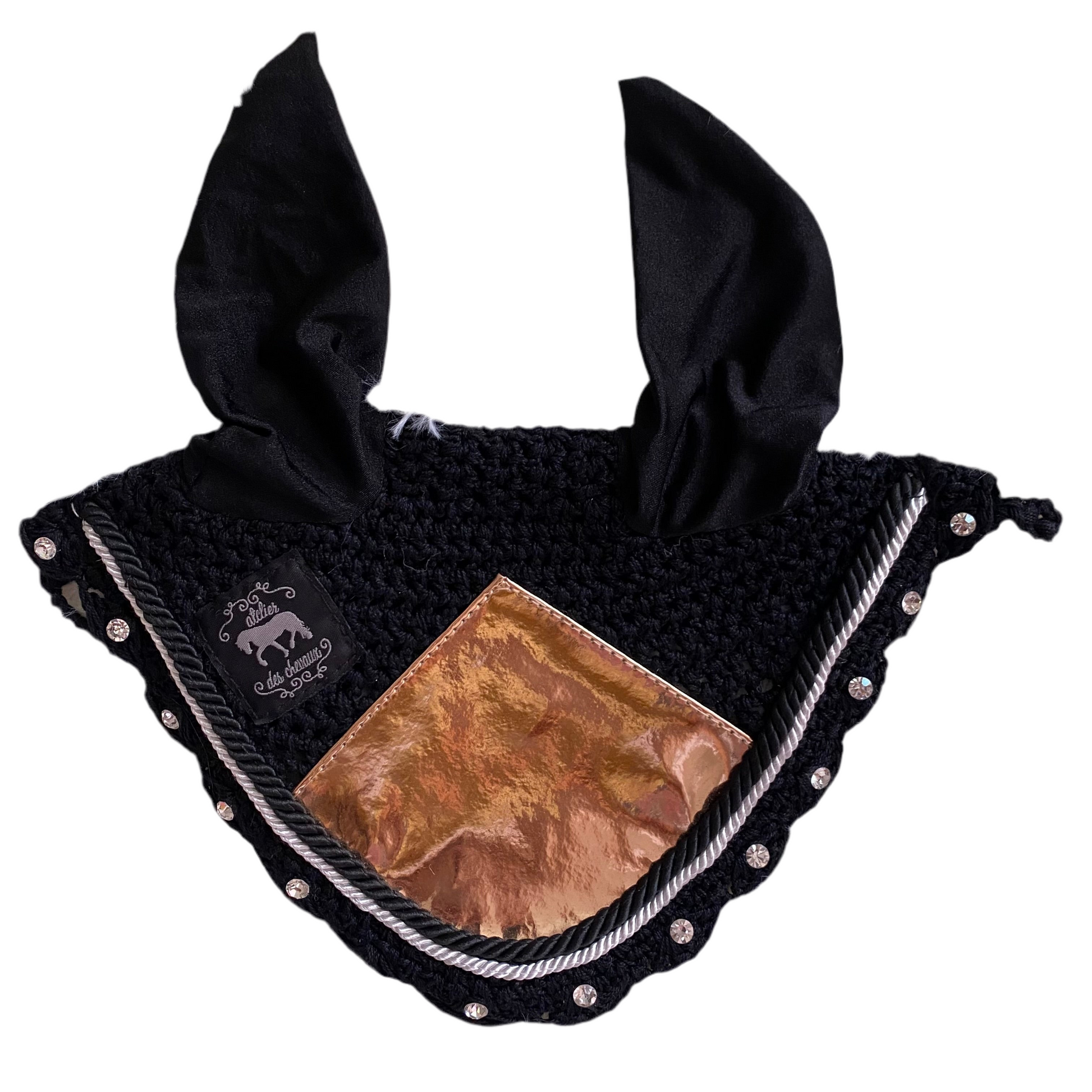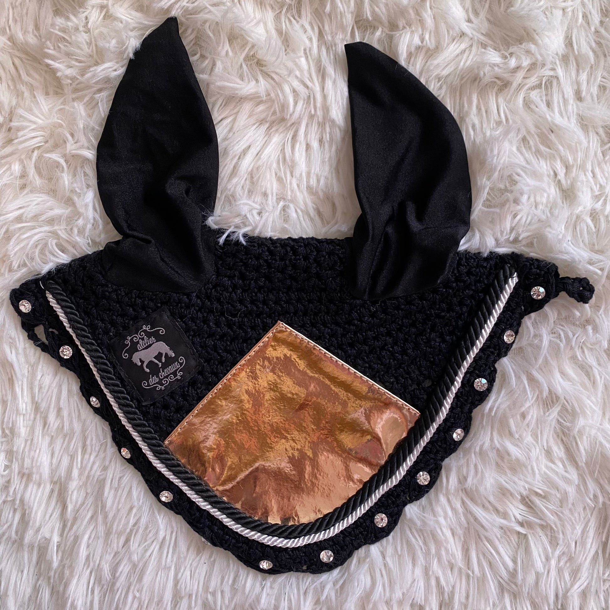 Realizzata a mano con lavorazione artigianale, questa cuffietta garantisce un prodotto unico e di qualità. Il materiale traspirante assicura massimo comfort e freschezza, mentre le orecchie in lycra morbide ed elastiche offrono una vestibilità ottimale. L’effetto scintillante Rose Gold metallizzato aggiunge un tocco di eleganza, rendendola perfetta per ogni occasione: allenamento, competizioni o passeggio. ✨🐎💛