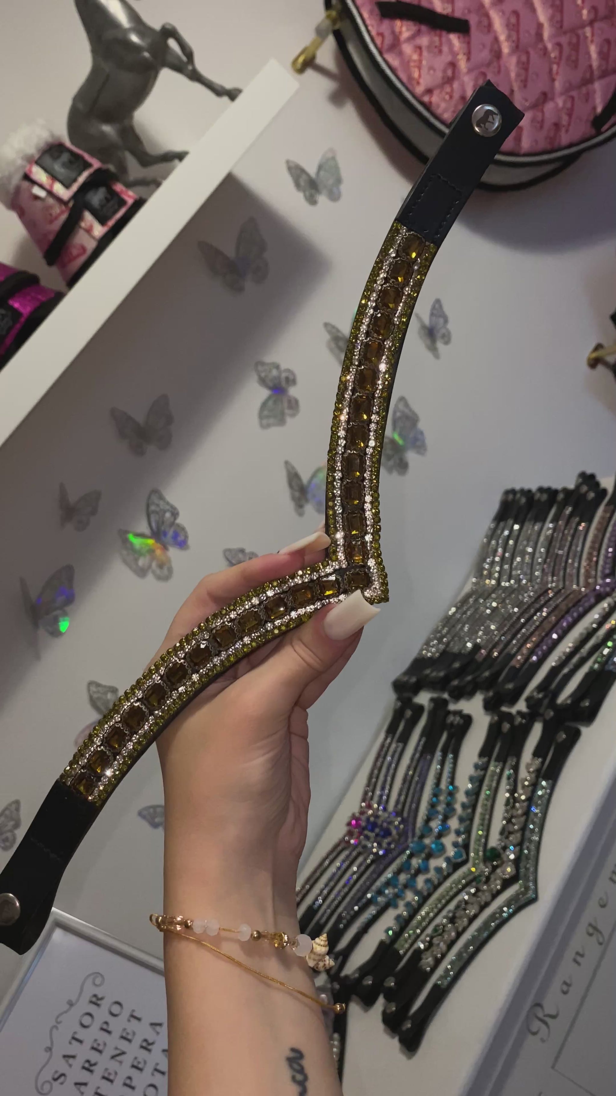Perfetto per gare, eventi speciali o allenamenti, aggiunge un tocco di stile e femminilità alla testiera del cavallo, rendendo l’insieme scintillante e distintivo. 💛✨🐎🤩