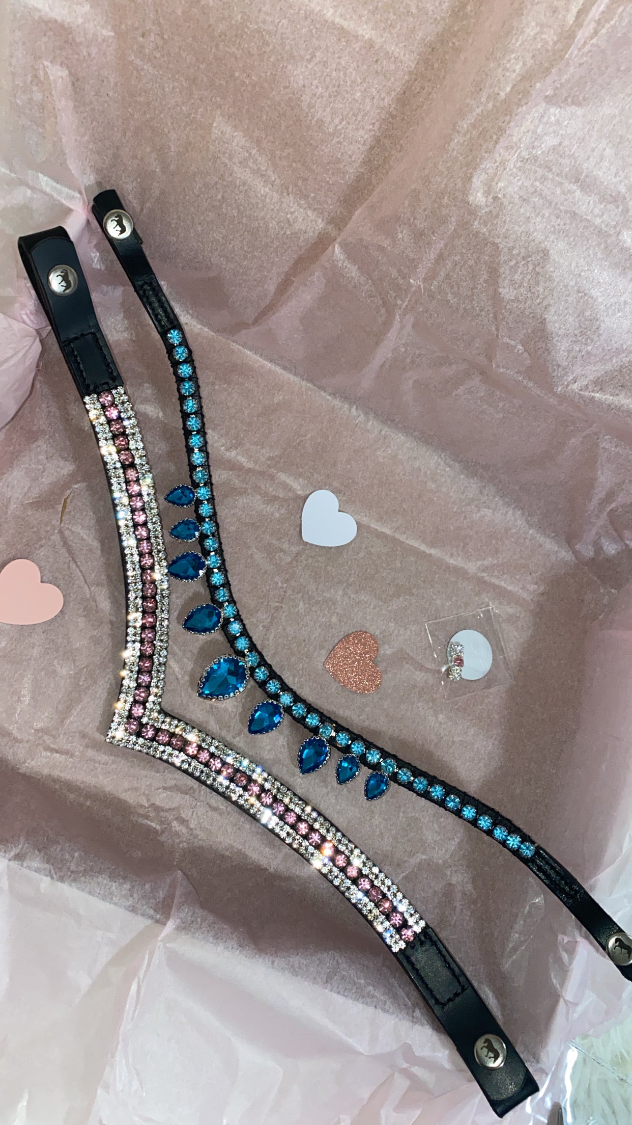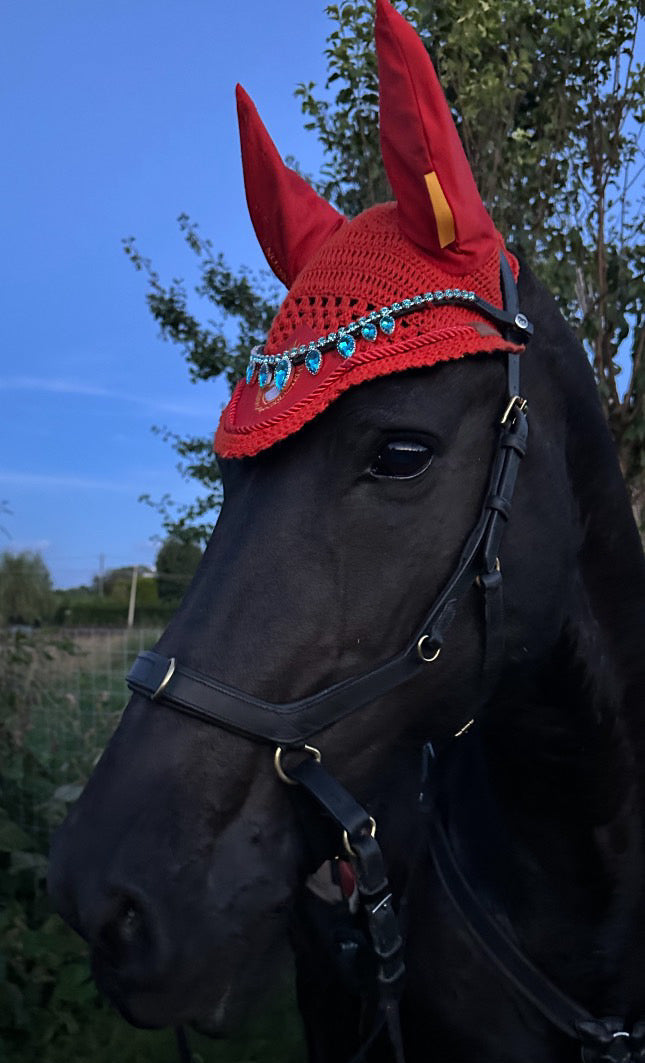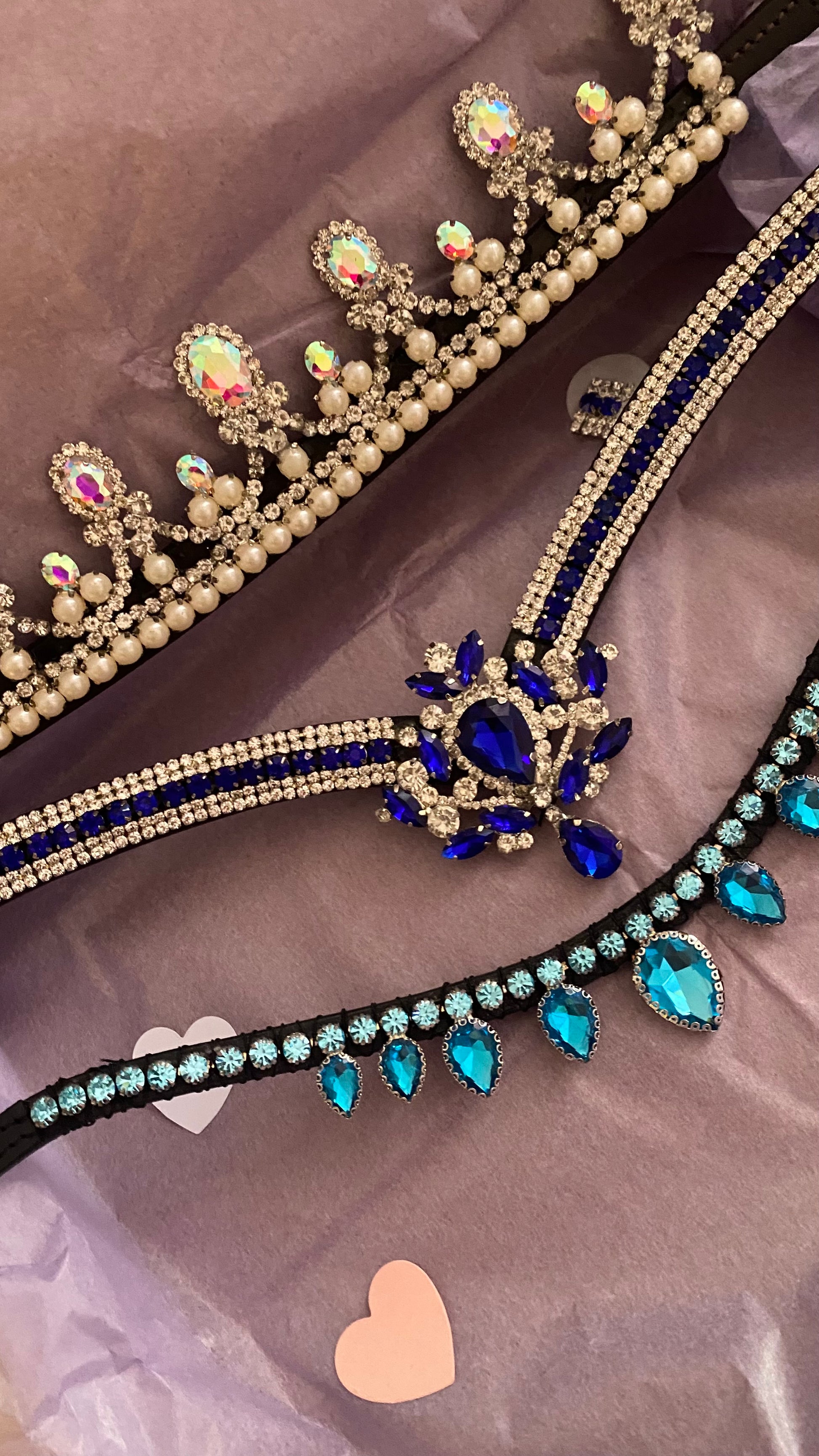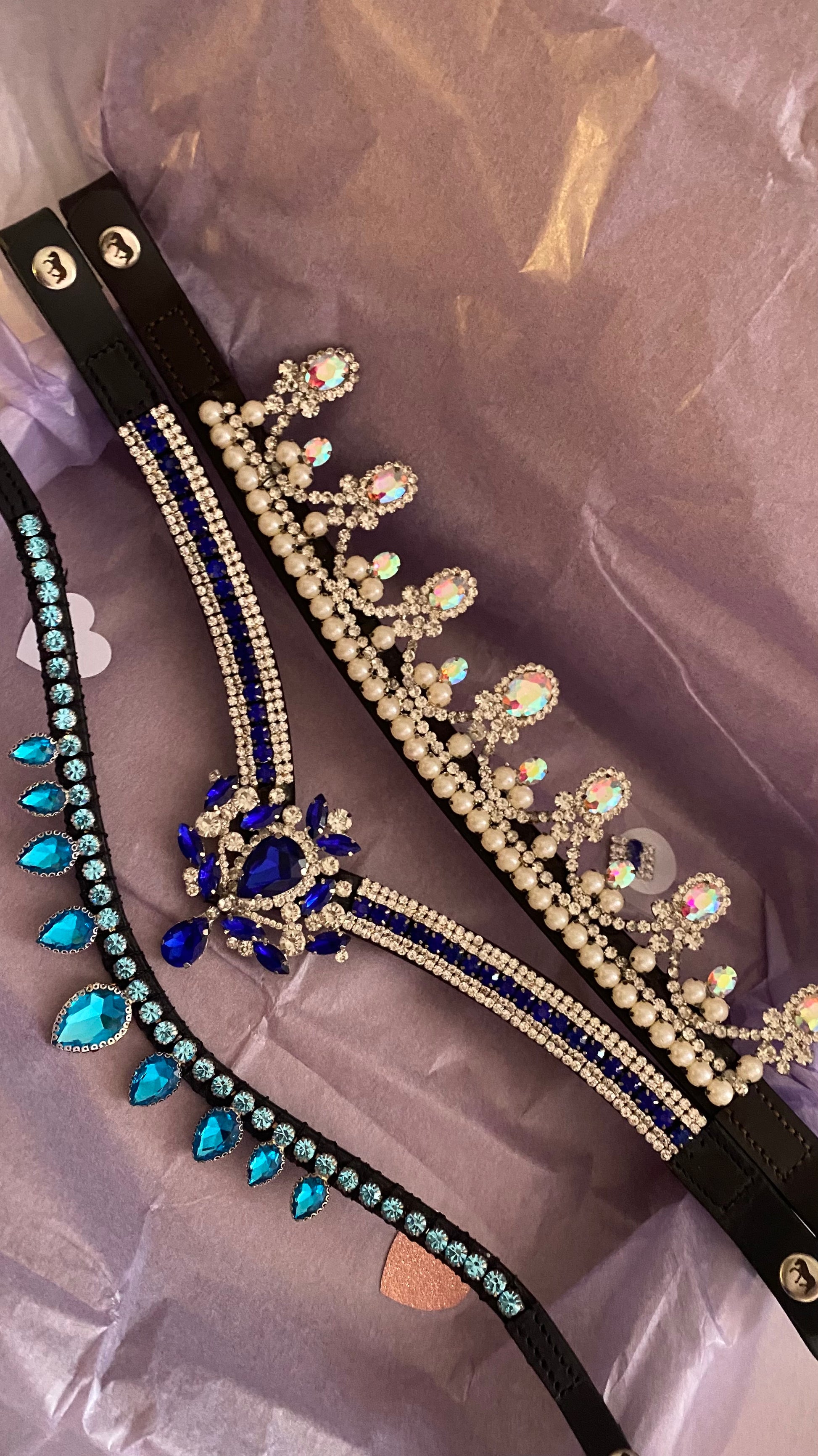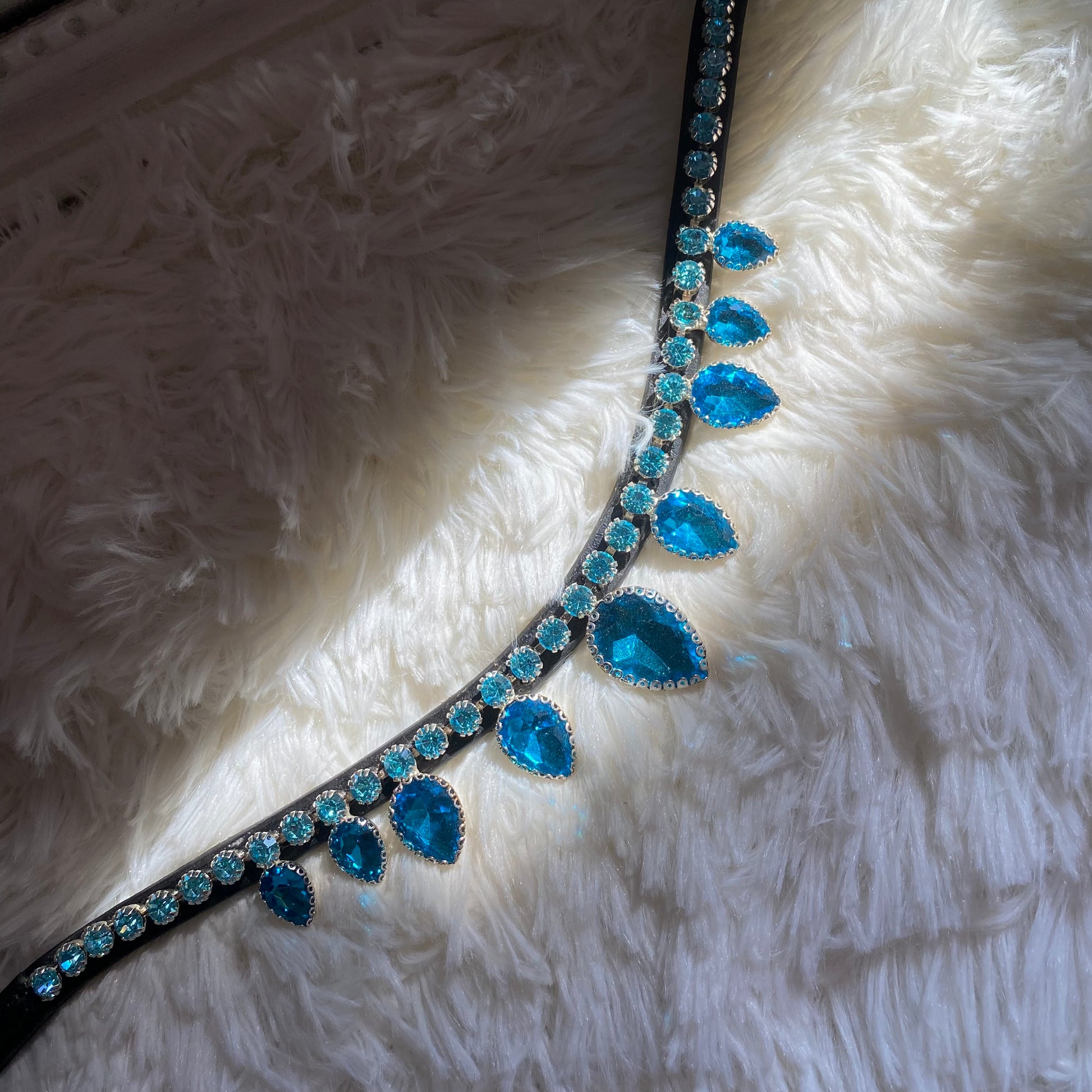 AzureDrop è il nostro esclusivo frontalino a goccia in un affascinante color azzurro, progettato per aggiungere un tocco di classe alla bardatura del vostro cavallo. Il suo design unico combina la raffinatezza della forma a goccia con la serenità del blu cielo, creando un accessorio che si distingue sia in pista che nel paddock.