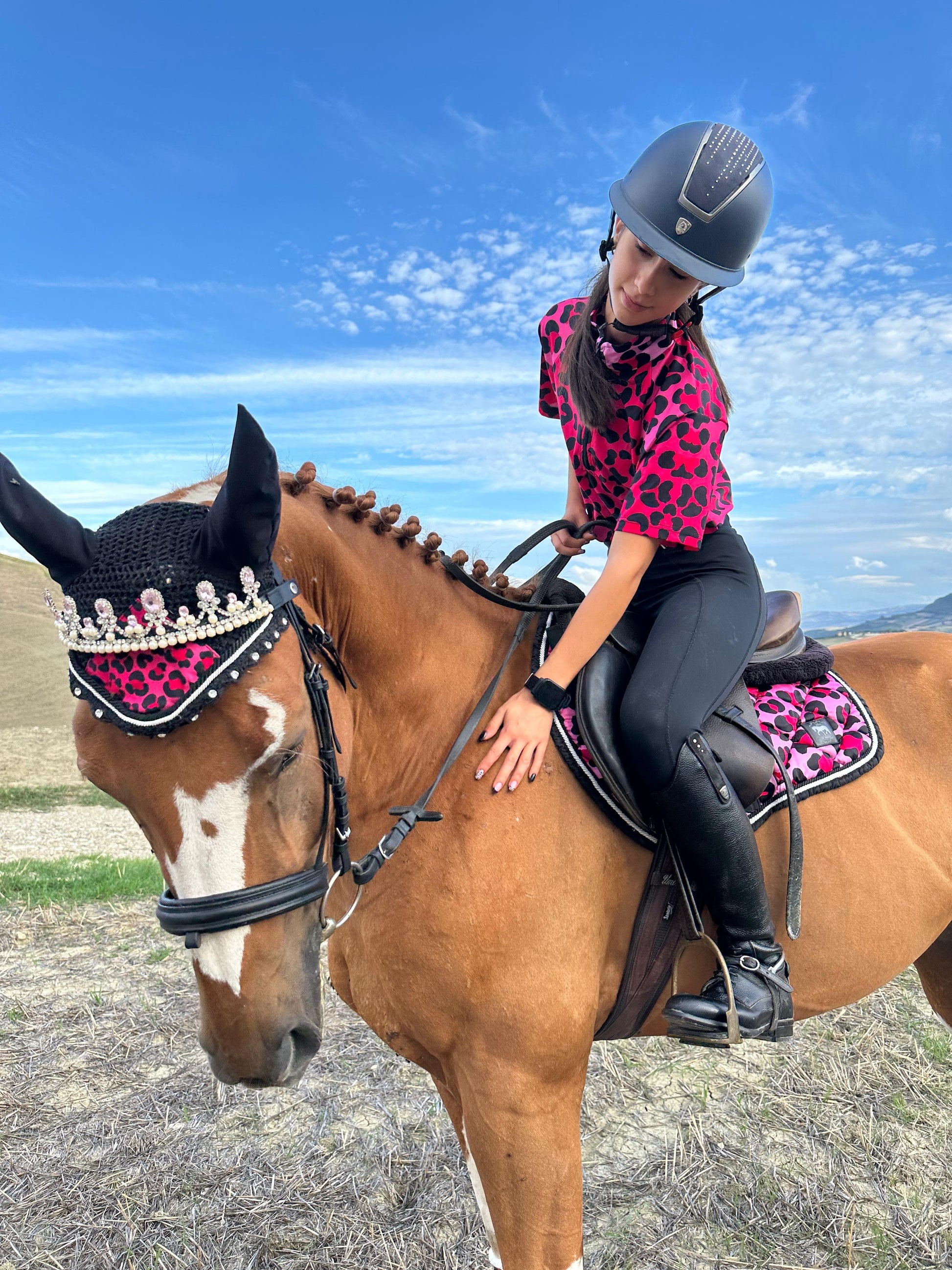 Perfetto per chi desidera aggiungere un dettaglio unico e ricercato al proprio equipaggiamento, questo frontalino è adatto sia per l’uso quotidiano che per competizioni ed eventi speciali, valorizzando la testa del cavallo con stile e personalità.