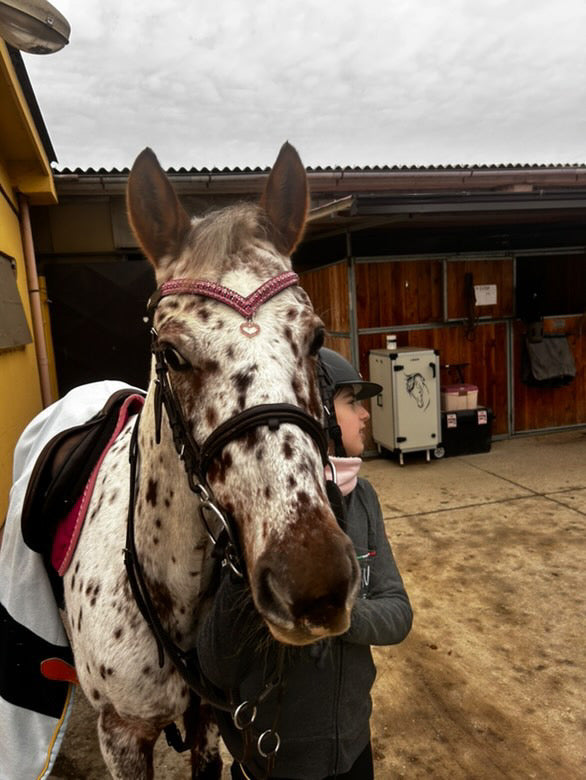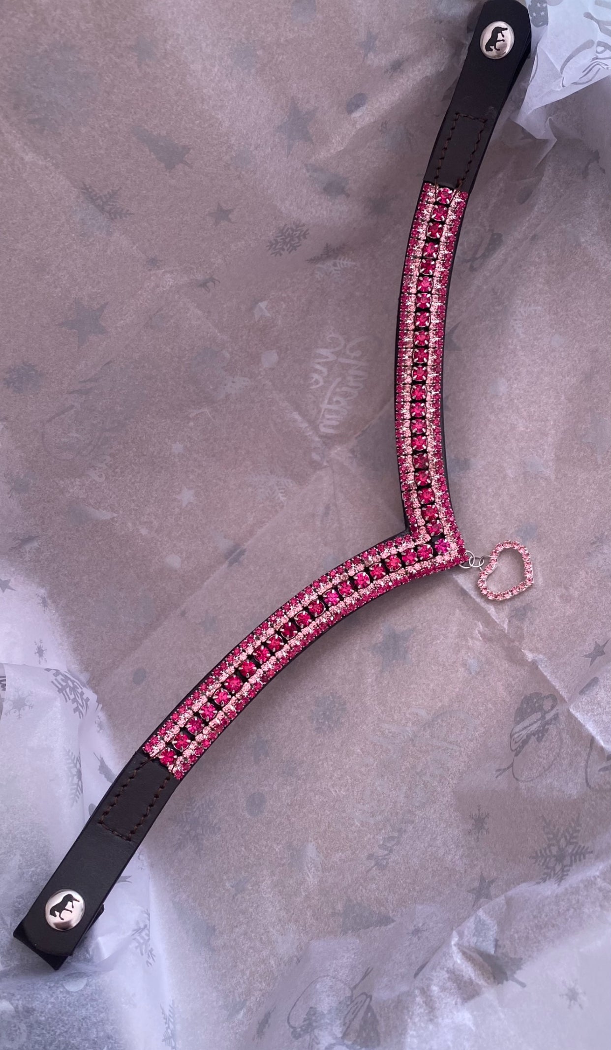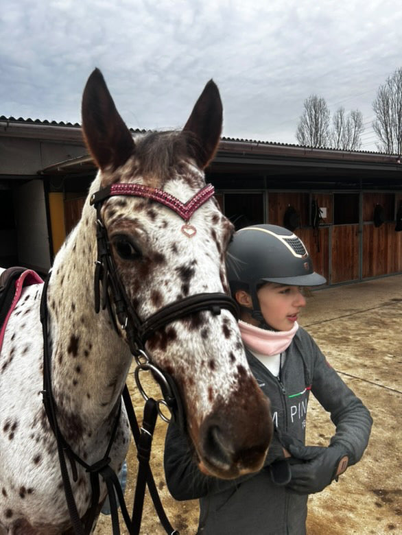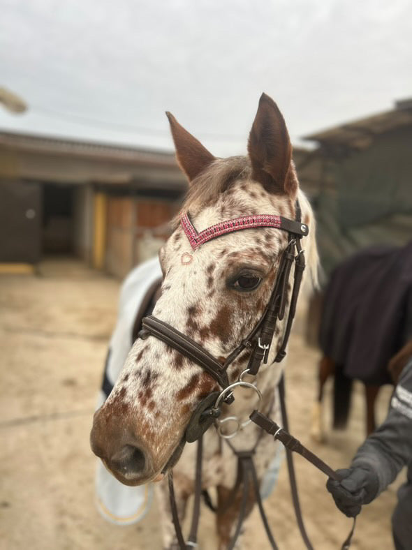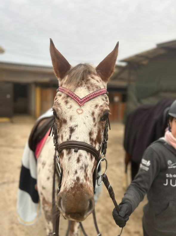 Frontalino “Heart Charm” – Un mix perfetto di eleganza e raffinatezza per il tuo cavallo. Realizzato in cuoio di alta qualità, garantisce resistenza e comfort, adattandosi perfettamente alla testiera. Il punto forte di questo frontalino è il ciondolo a cuore, un dettaglio delicato e sofisticato che aggiunge un tocco di stile unico.