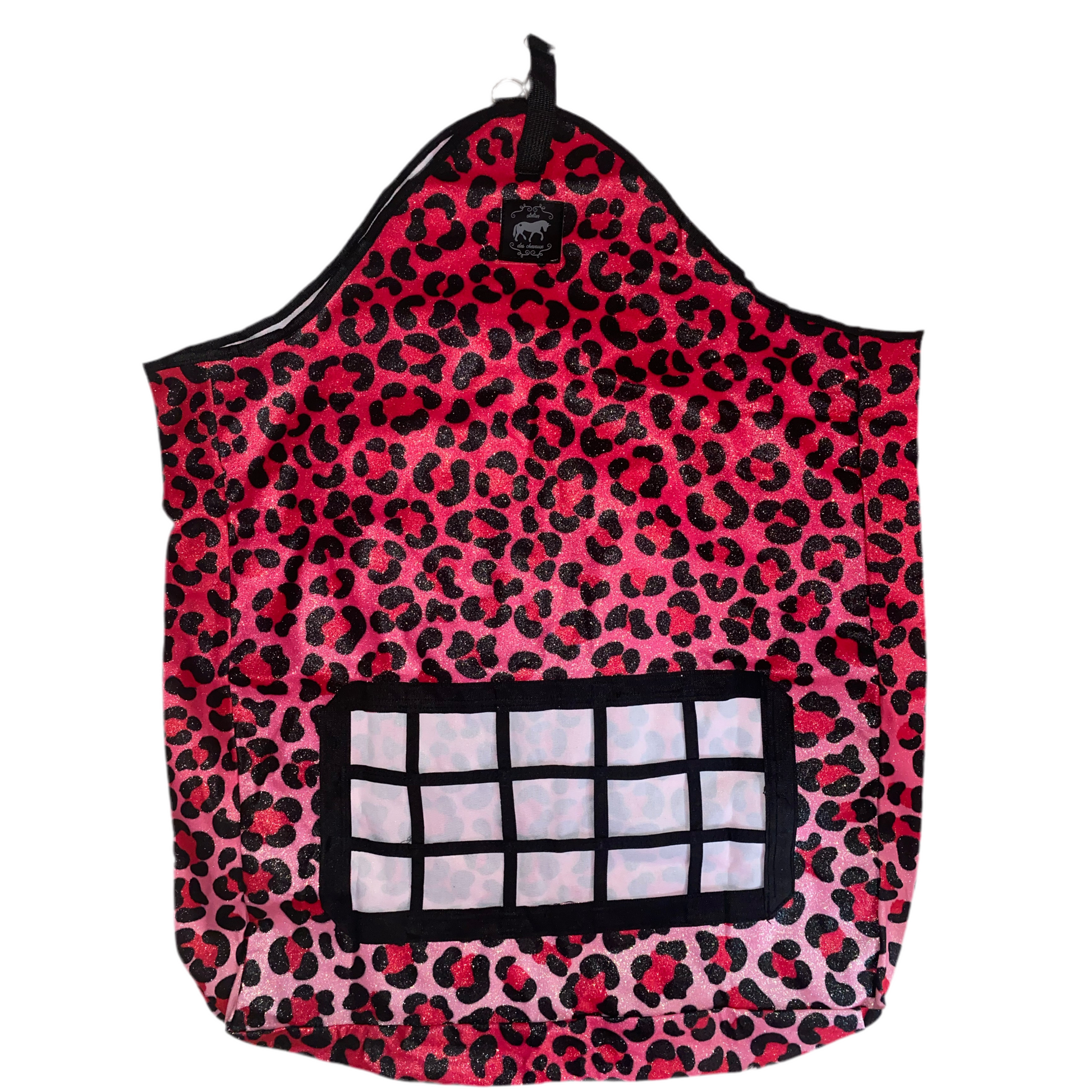Originale e grintoso, questo porta fieno in tessuto leopardato glitter rosa è l’accessorio perfetto per gare ed eventi speciali. Il design scintillante dal carattere deciso lo rende unico e di grande impatto visivo. 🐆💕
