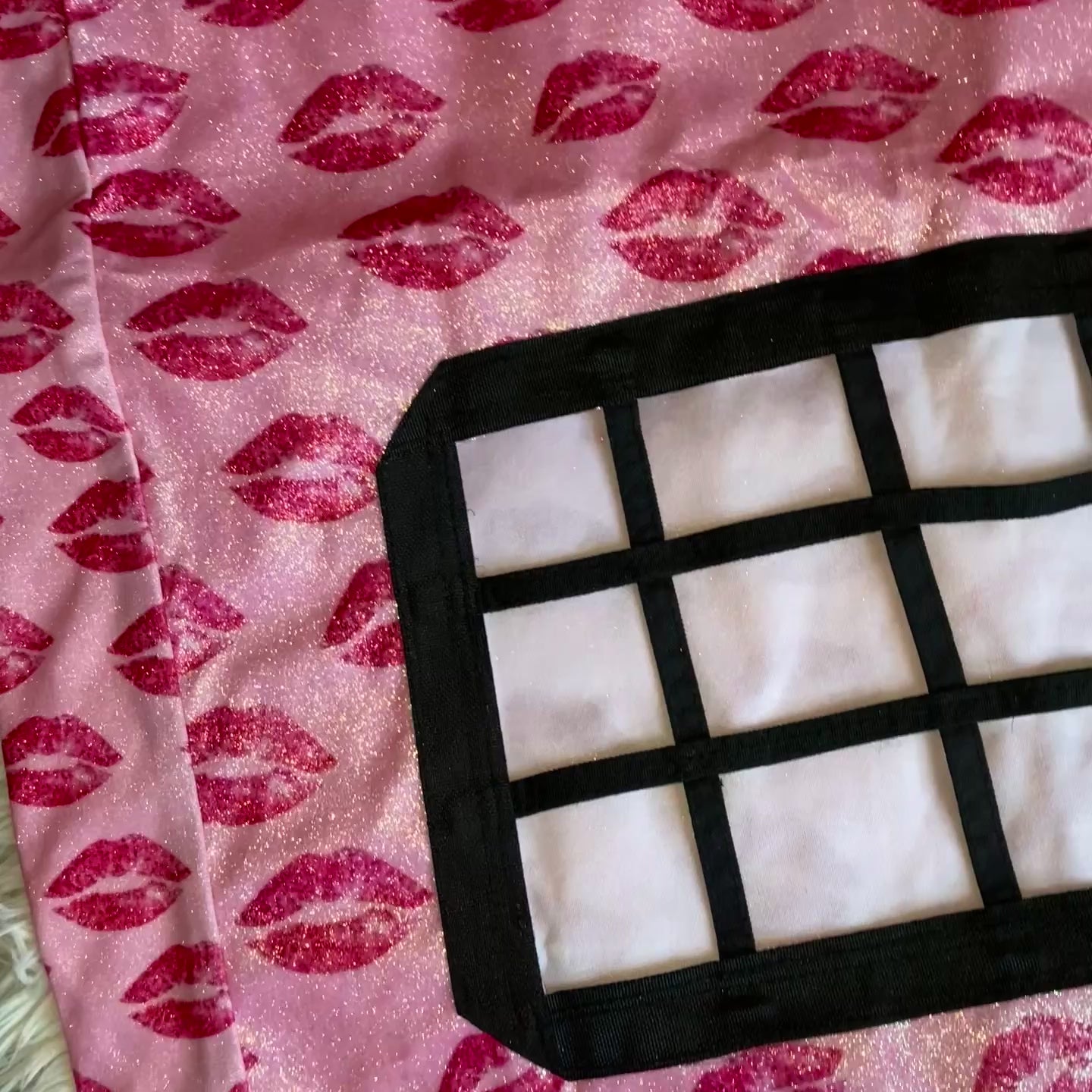 Accessorio elegante e scenografico, realizzato in tessuto glitter rosa chiaro con fantasia a baci, ideale per gare e occasioni speciali. Dona un tocco unico e distintivo, perfetto per distinguersi.
