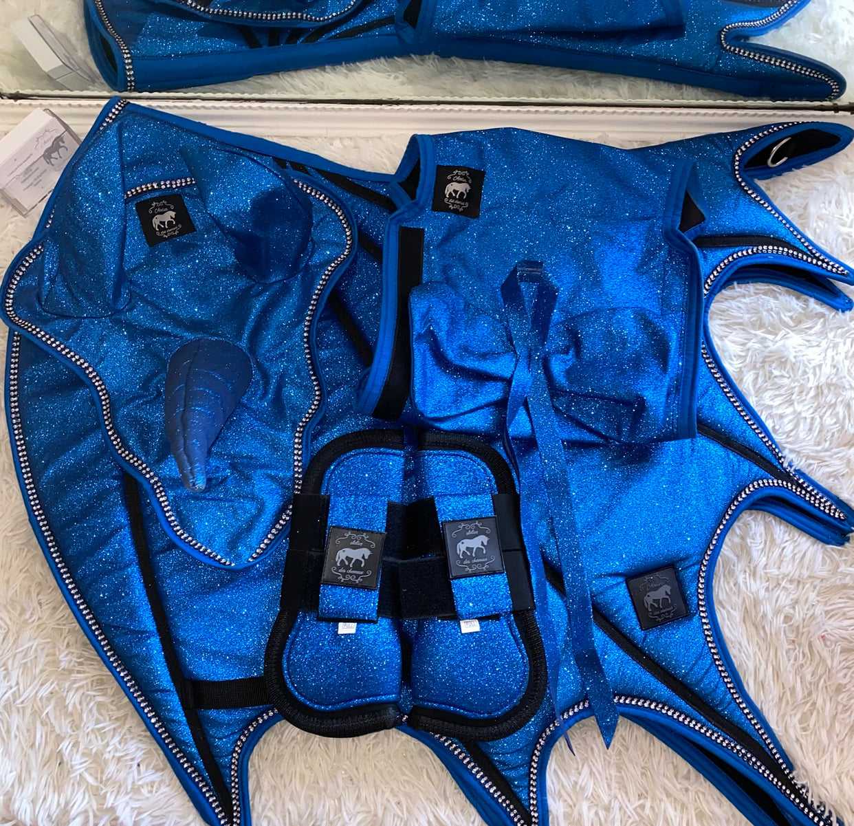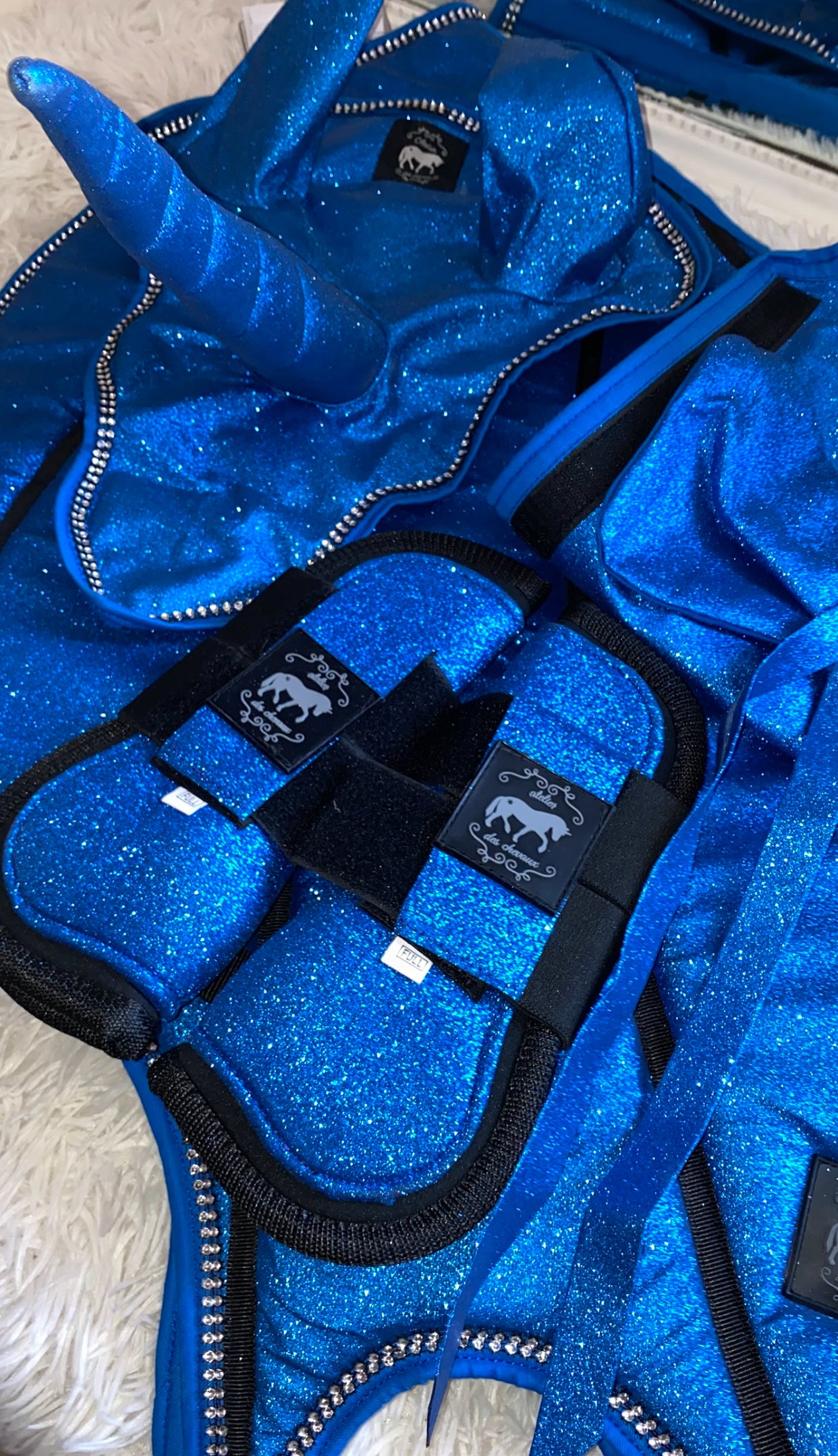 🦄 Set Unicorn blu glitter perfetto per trasformare il tuo cavallo in una vera icona di stile! Questo set include: