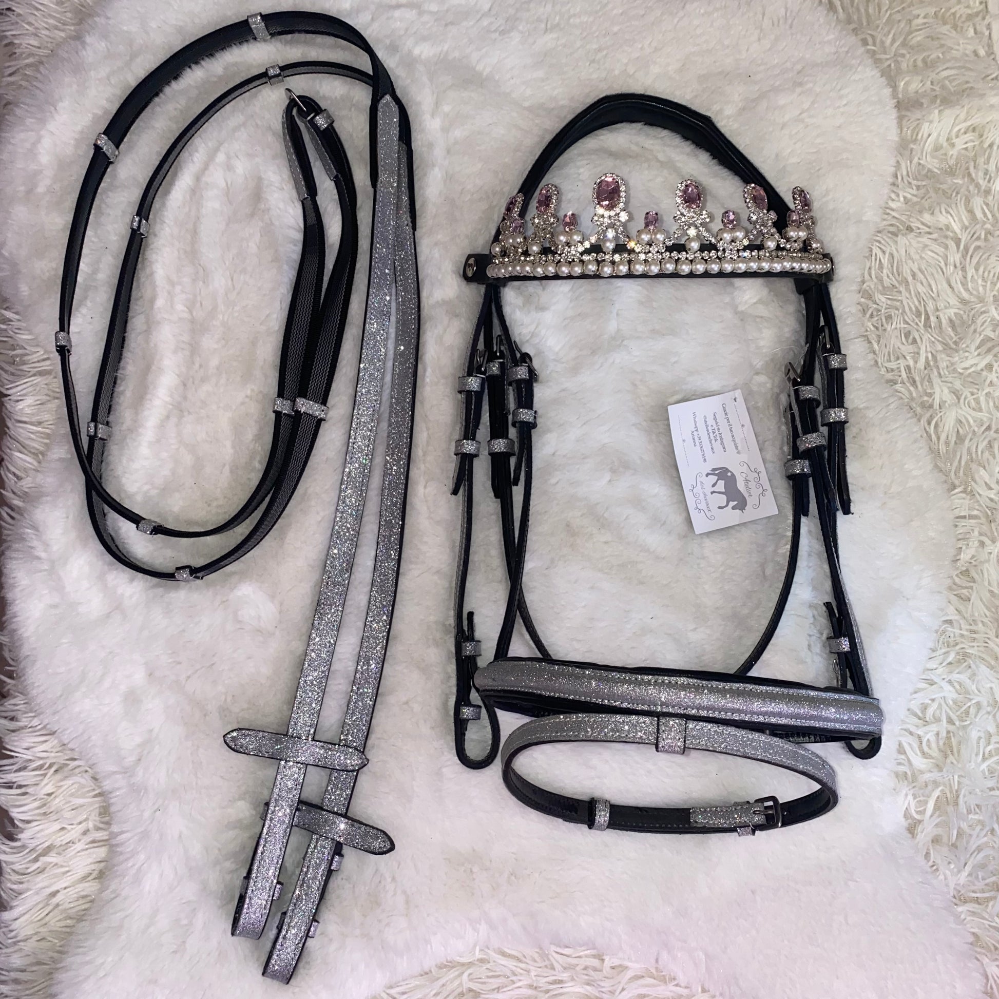 Unisci regalità e brillantezza con la nostra straordinaria testiera 'Silver Star'. Questo accessorio unico combina eleganza regale e scintillio moderno per i cavalieri che desiderano sentirsi veri reali in sella.