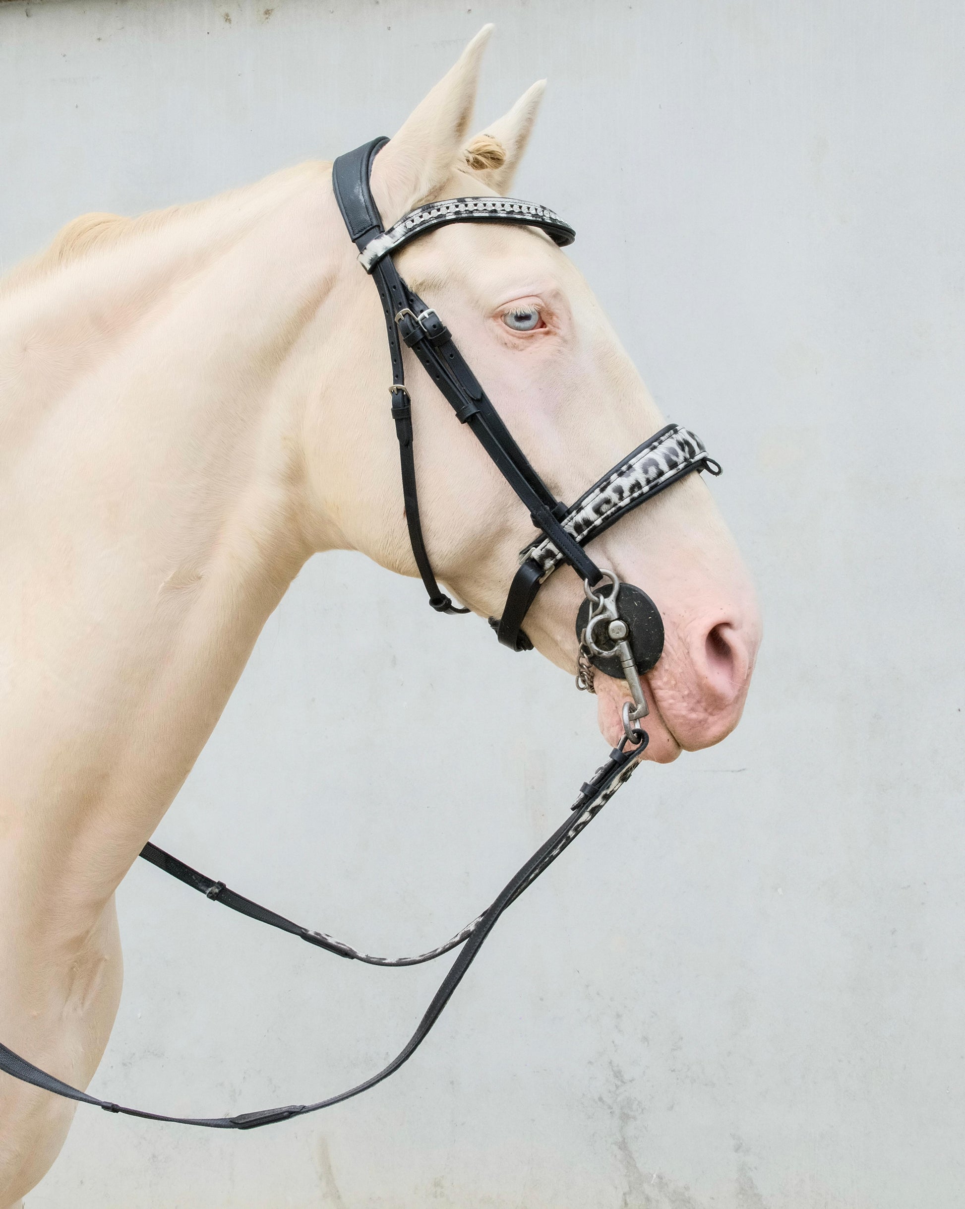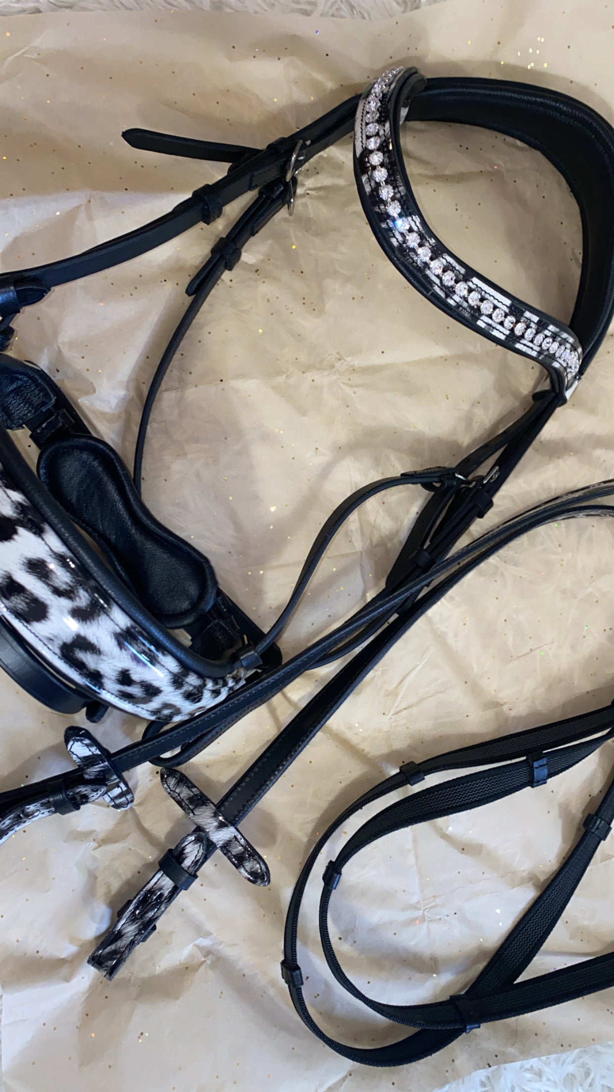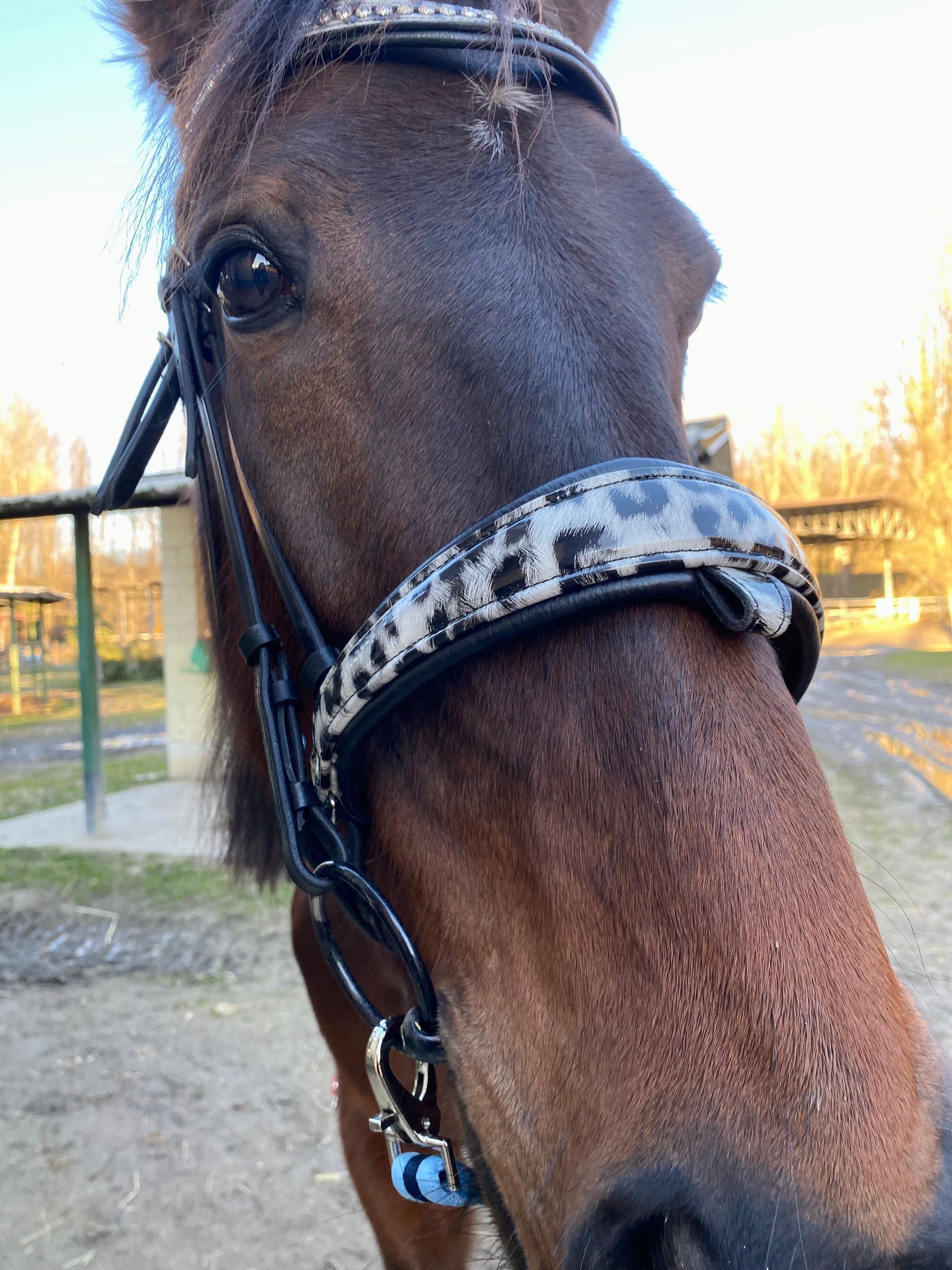 Aggiungi un tocco di selvaggia eleganza alla tua attrezzatura equestre con la nostra testiera in cuoio leopardata 'Leopard Lux'. Questa testiera unica combina stile audace e funzionalità superiore per i cavalieri che desiderano distinguersi.
